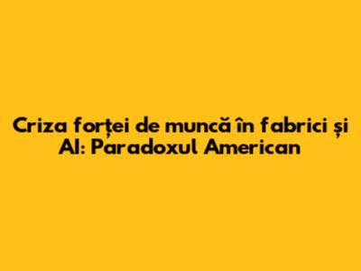 În Statele Unite, asistăm la un paradox tragic: fabricile se confruntă cu o criză acută de forță de muncă, în timp ce investițiile în inteligența artificială (AI) și automatizare continuă să crească. Această situație ridică întrebări importante despre viitorul producției, rolul tehnologiei și modul în care ne pregătim forța de muncă pentru schimbările viitoare. Lipsa muncitorilor calificați în sectorul manufacturier este o problemă complexă, cu multiple fațete, care necesită o analiză profundă și soluții inovatoare. Fenomenul nu este nou, dar amploarea sa actuală pune o presiune considerabilă pe economia americană, afectând lanțurile de aprovizionare, productivitatea și competitivitatea globală. Articolul de față explorează cauzele acestei crize, impactul investițiilor în AI și automatizare, și posibilele soluții pentru a depăși această provocare.